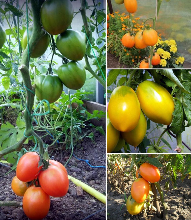 | Puuviljade omadused | Tomateid iseloomustab mõnevõrra silindriline kuju ja sile pind. Piimaküpsuse staadiumis on nad rohelised, täisküpsena punased, iseloomulike kollase värvusega pikitriipudega. Viljade keskmine kaal on 250-300 grammi. Viljad sobivad värskete salatite valmistamiseks ja konserveerimiseks. |